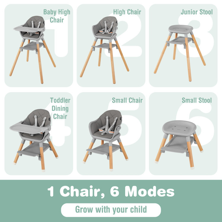 6 in 1 Convertible Highchair with Safety Harness and Removable Tray