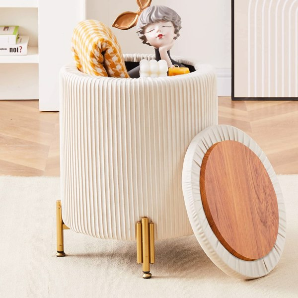Large Storage Ottoman Velvet Round Footrest Footstool Modern Upholstered Padded Pouffe Vanity Stool with Gold Plating Leg for Bedroom Living Room
