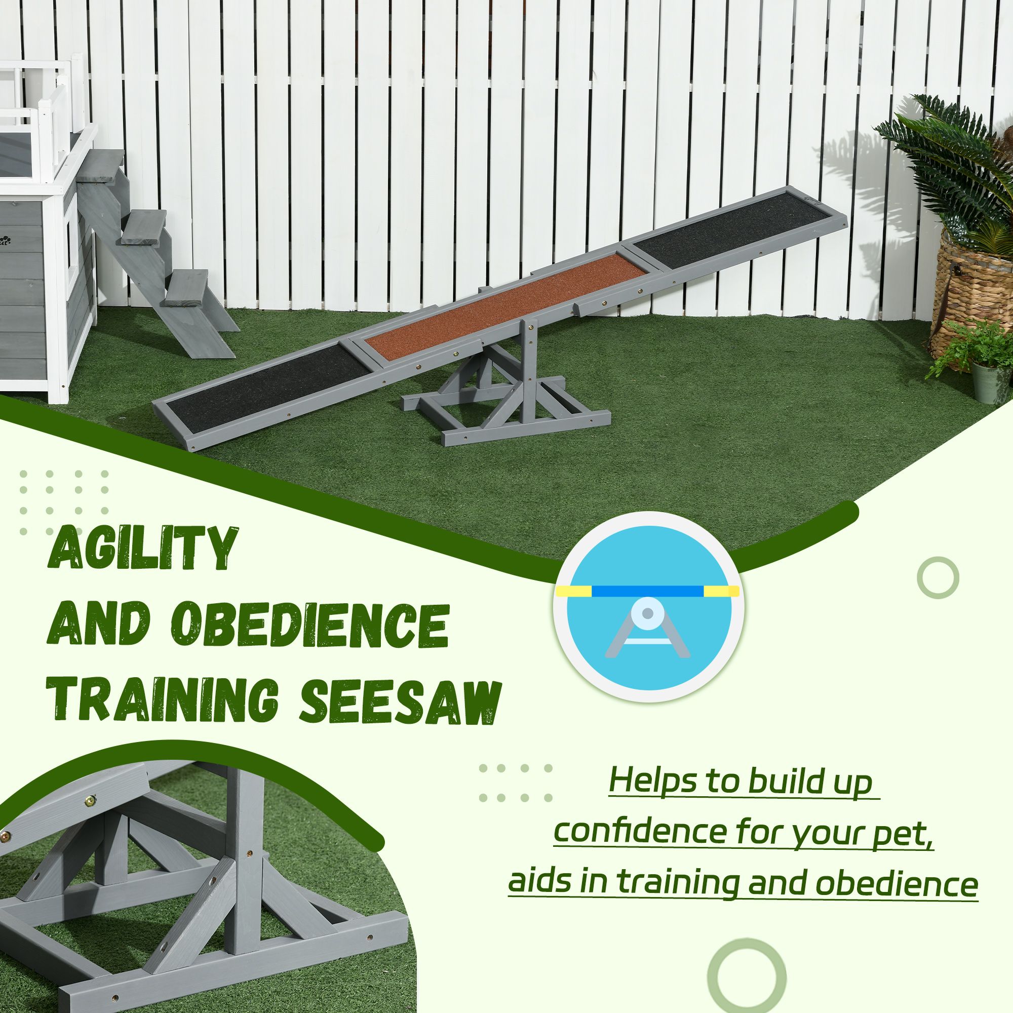 This PawHut seesaw made from fir wood is an ideal solution for your pet's agility and training. The seesaw has an anti-slip felt to help with grip while allowing your pet to balance and be in control. This uniquely designed toy will mentally entertain your pet in more ways than other typical dog toys. It helps younger pets build up confidence and can also aide in their obedience. A great and functional gift for your lovely pet.